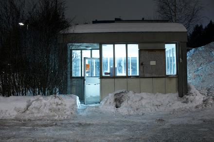 Det är ett, av sly och snö, dolt litet hus på parkeringen utanför patienthotellet vid Norrlands Universitetssjukhus (NUS) som nu synliggörs med en ljus- och ljudinstallation av konstnärerna Camilla Caster, Stina Lundin, Ida Hansson och Gunilla Åsberg. På dörren som leder från parkeringen in till rummet finns en text om ”husets världsbild”. Texten går också att läsa på ett av de två event som skapats på facebook för denna korta utställning.