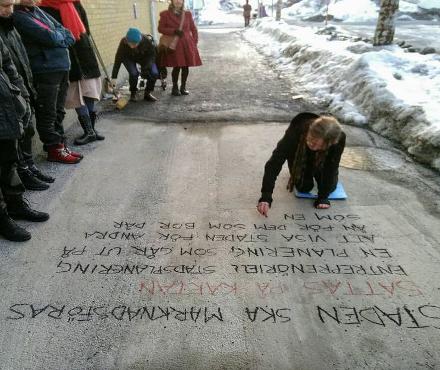 Konstnärerna berättar att deras samarbete började med en workshop om offentlig konst. Att de tillsammans sökt 3 offentliga gestaltningsuppdrag utan att få napp och att de nu tagit saken i egna händer. De har utgått från det rådande samhällsklimatet och diskuterat begreppet sanning.